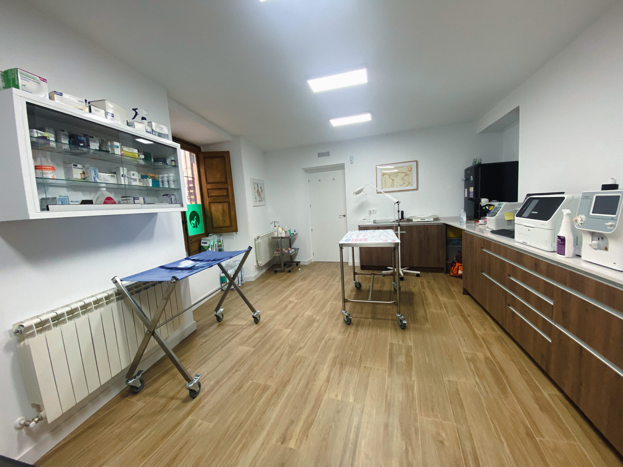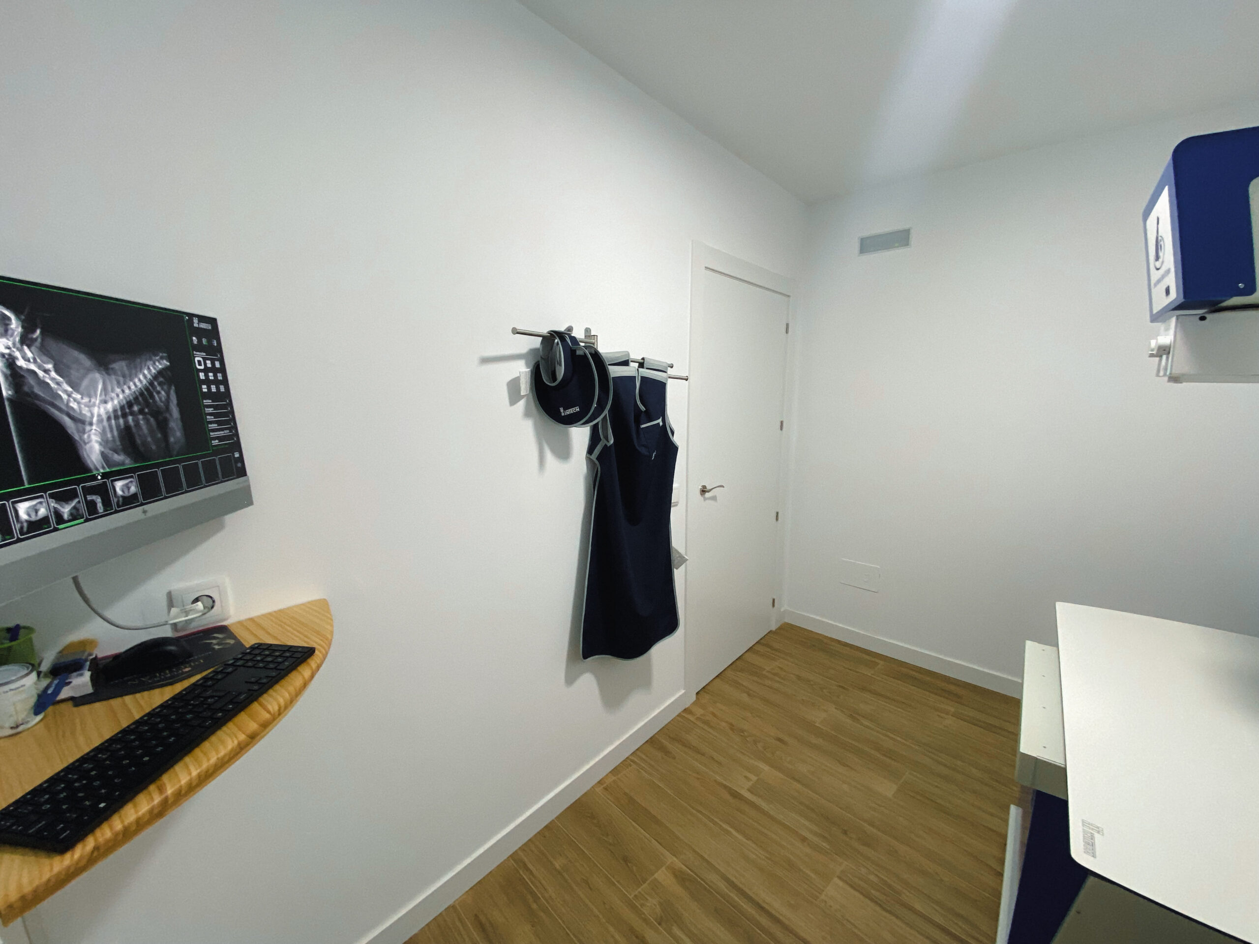 La consulta, amplia y cómoda, con mesas de exploración y de anamnesis, es el centro neurálgico de la clínica. Desde ella se accede al quirófano, a la sala de diagnóstico por imagen y al laboratorio, equipado con máquinas de analítica sanguínea y microscopio. También contamos con una sala de recuperación para animales, con una zona de descanso para el equipo y, por supuesto, con la recepción, donde se puede encontrar una amplia muestra de productos para la nutrición fisiológicos y terapéuticos.